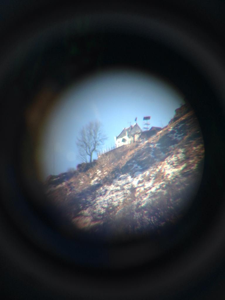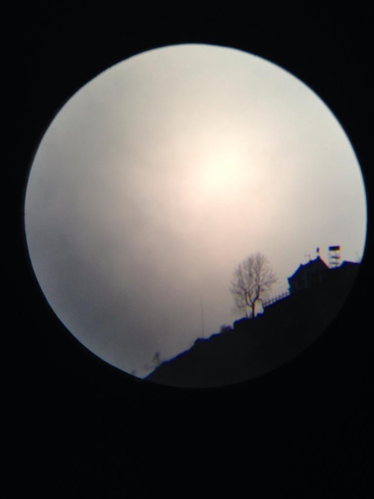 It is La Res silhouette against a cloudy sky shot through a spotter scope on Eremo terrace